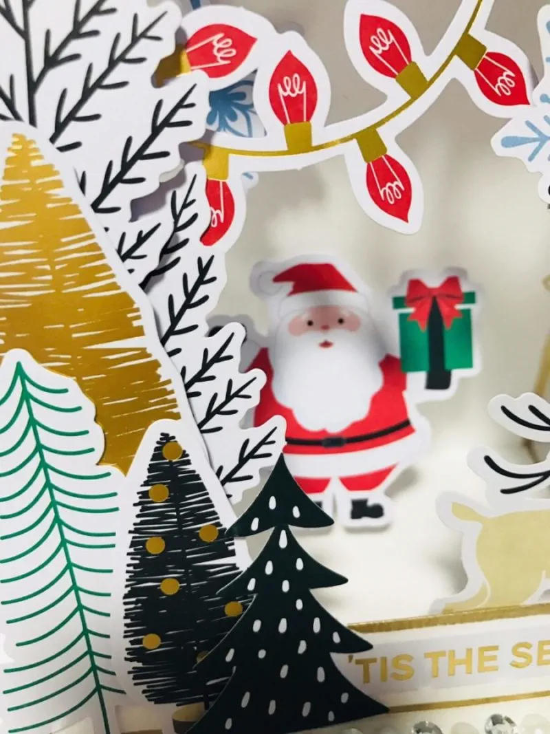 Here's a fun little Christmas easel card I whipped up today. I love how the cut out in the front allows a multi dimensional effect inside. I picked up the cute die cuts and embellishments for this card from The Reject Shop! The card is formed from a sheet of 30x30cm white card stock, cut… Continue reading A Christmas Easel Card