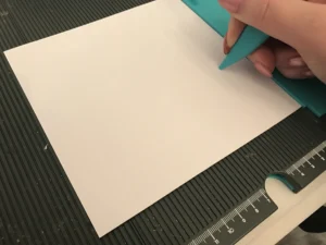 - Align the bottom of your square card with the bottom of the folded section of easel.