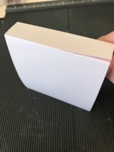 - Apply glue to the outside of the small (1cm) end flap and align it with the inner of the joining side and press together