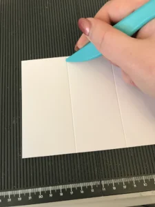 - In landscape position on your scoreboard, score across this card at at 2.5cm, 13.5cm, 16cm and 27cm.