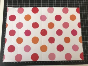 (Tip: To put it simply, the 2.5cm scorelines should be folded ‘valley’ (downwards) and the lines surrounding the 9cm columns should be mountains)