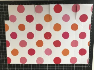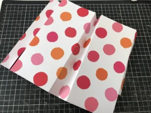 - Fold both the top and bottom horizontal score lines ‘mountain’ (edges to inside of the box)