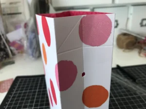 - In the side (valley) folds of your bag box, punch or poke a small hole at 5cm down from the top